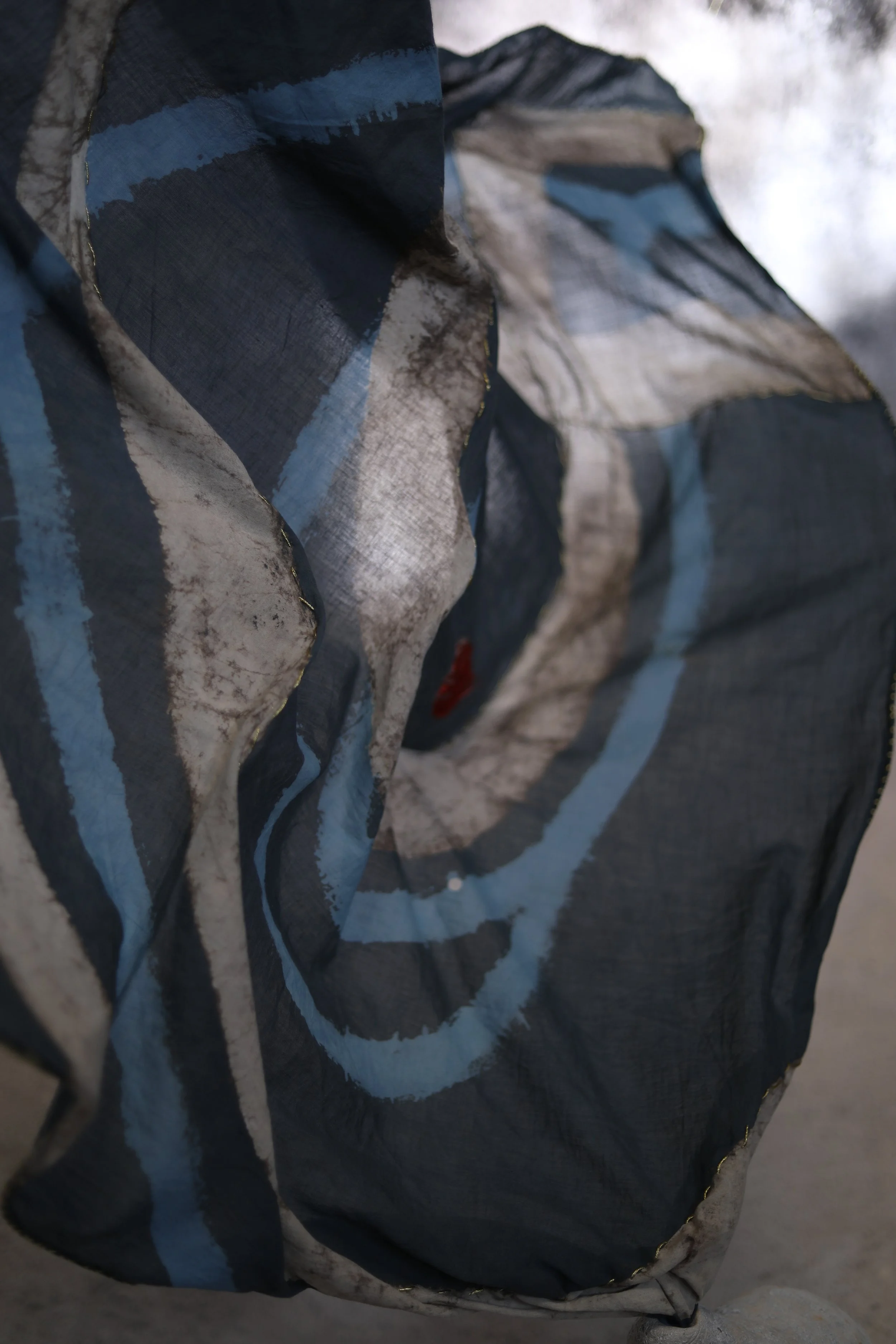 Materials: Cotton dyed with indigo, madder root, iron oxide; thread, rope, metal wire